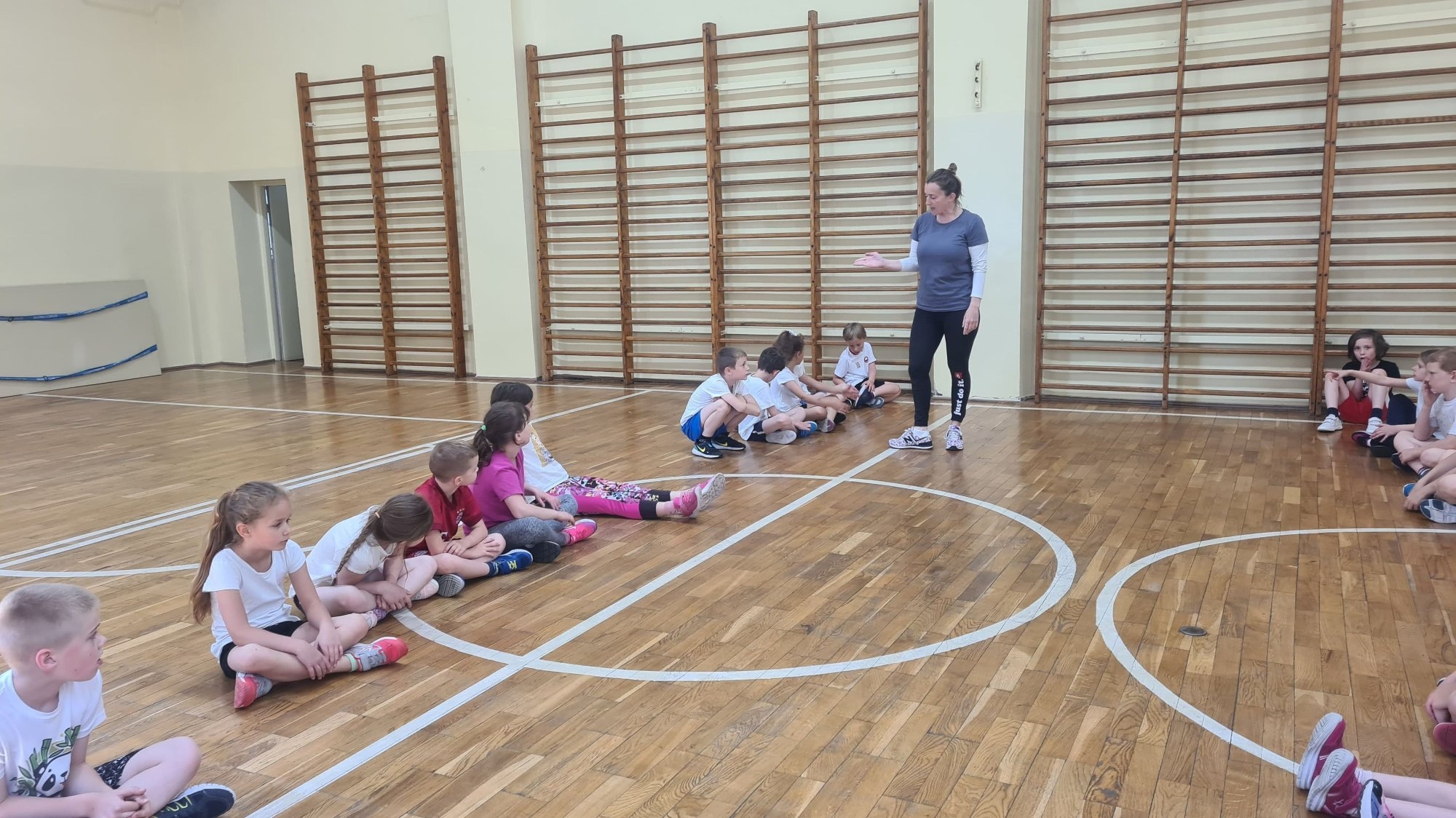 Dnia 31 maja gościliśmy w naszej szkole trenera partnerującego nam klubu IUKS Jedynka Dagmarę Ciarkę, która w ramach lekcji wychowania fizycznego poprowadziła trening z klasą 1c sportową. Trening polegał na zabawie z elementami siatkówki mającej zachęcić młodych ludzi do dalszego uprawiania tego sportu.